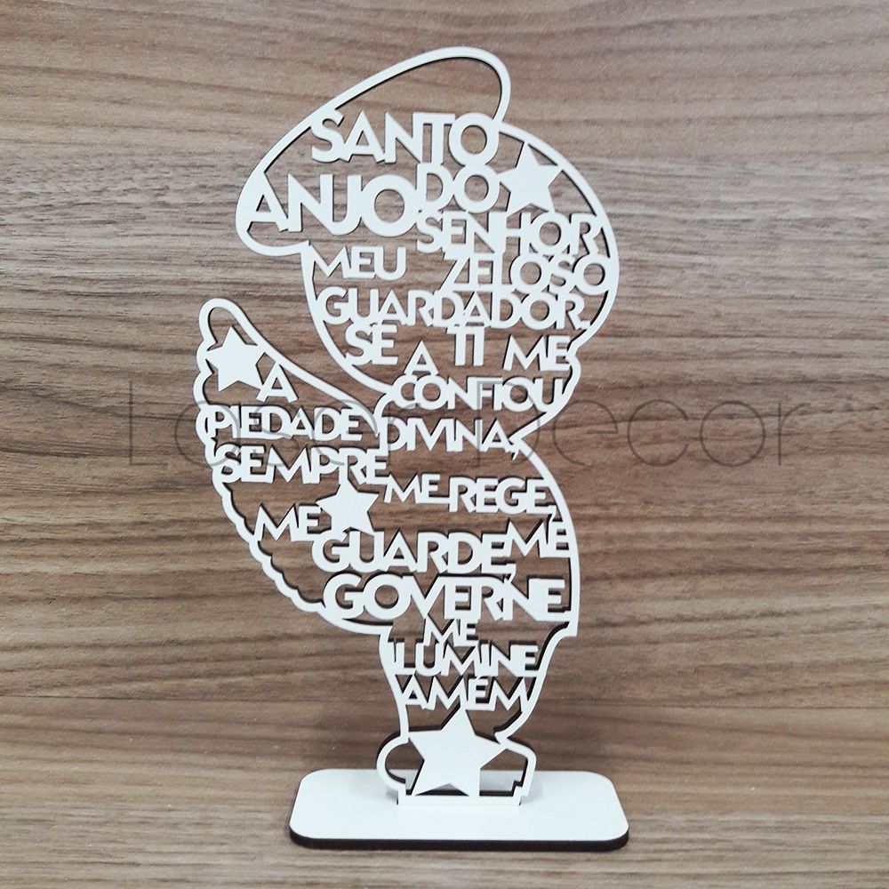 Enfeite Anjo Perfil com Oração Santo Anjo 18 cm MDF Branco