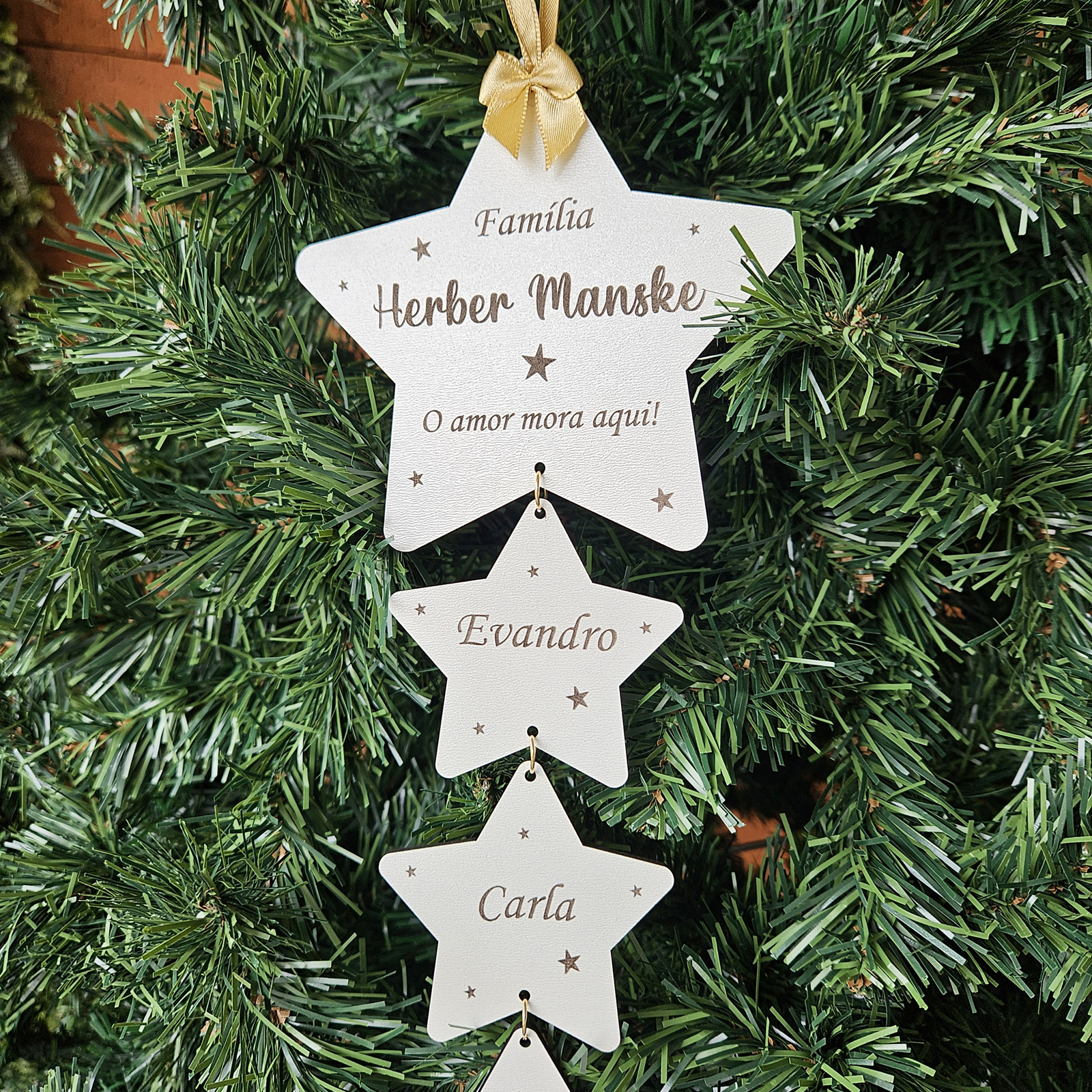 Cada estrela representa alguém especial — pais, filhos, avós ou até o pet! Todas ligadas entre si, formando uma corrente de afeto que reflete o verdadeiro espírito do Natal: a união e o amor dentro do lar.